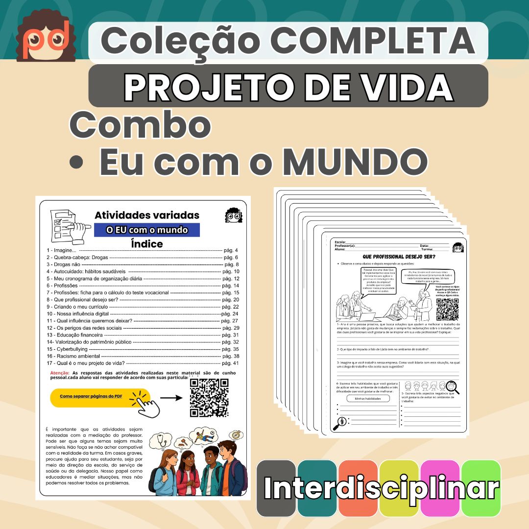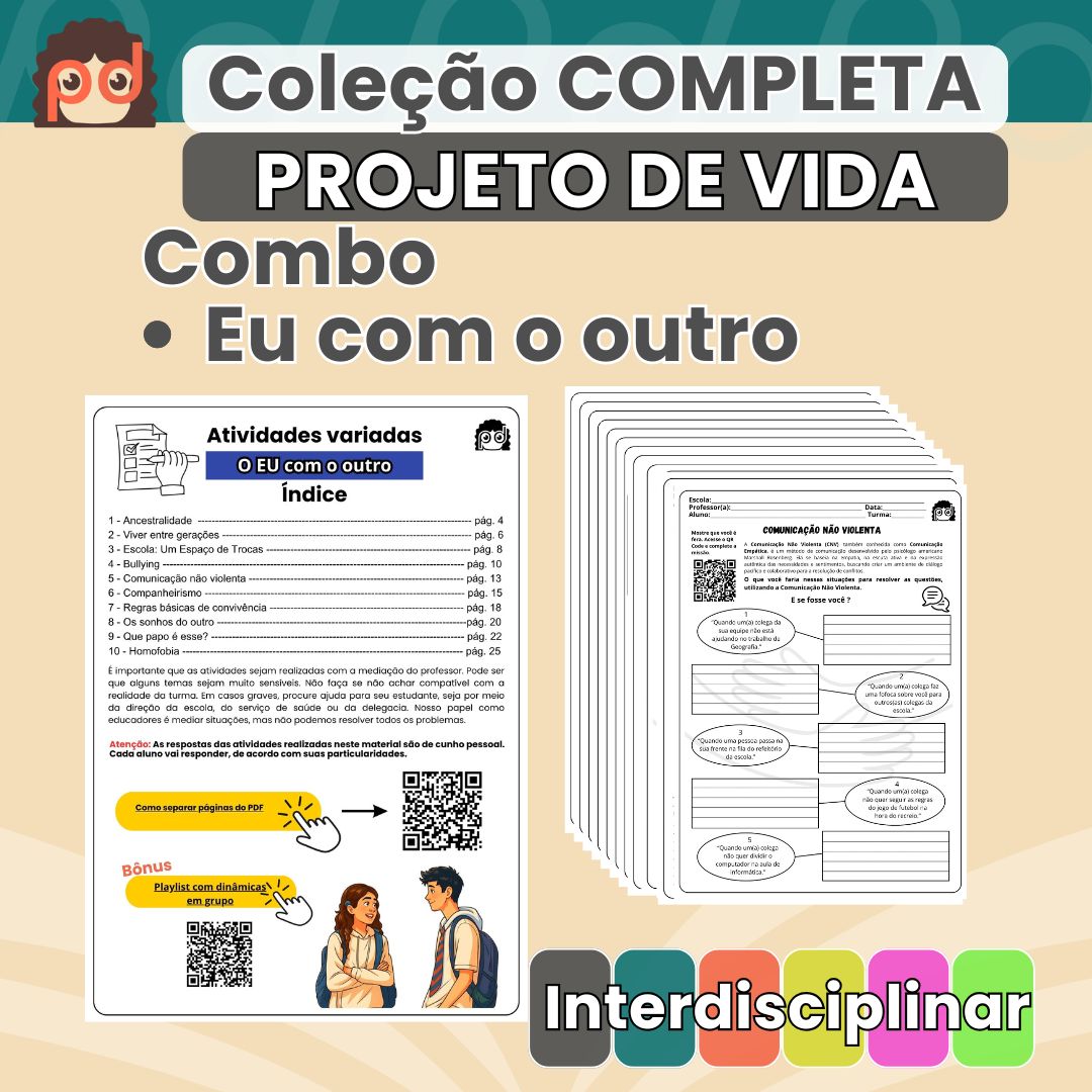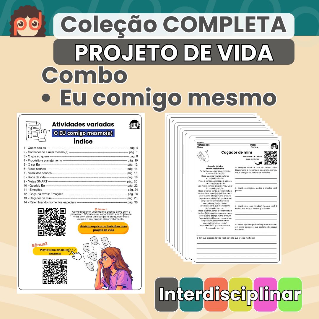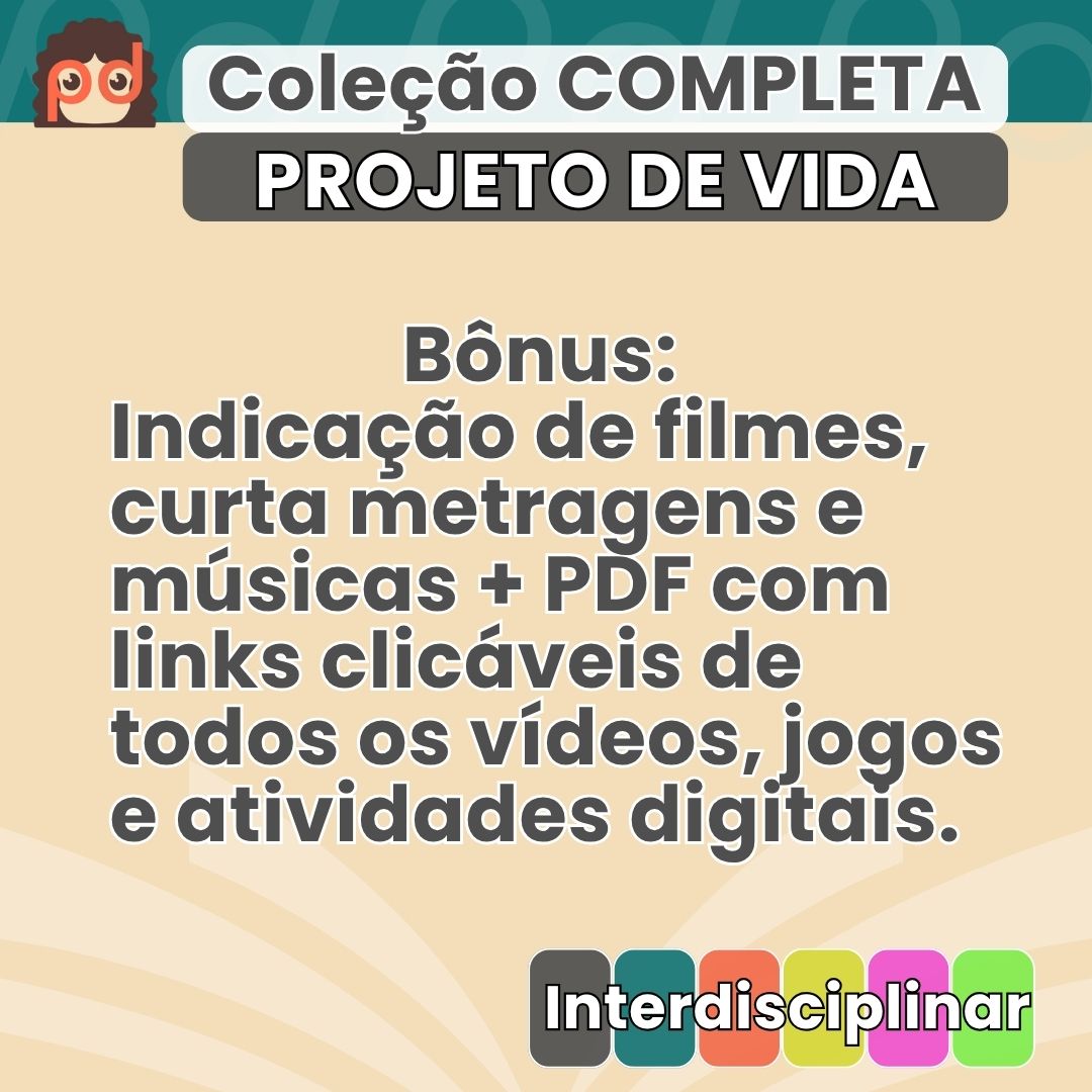 E ainda ganha um arquivo bônus com indicações de filmes, músicas e comentários para enriquecer suas aulas de Projeto de Vida.
